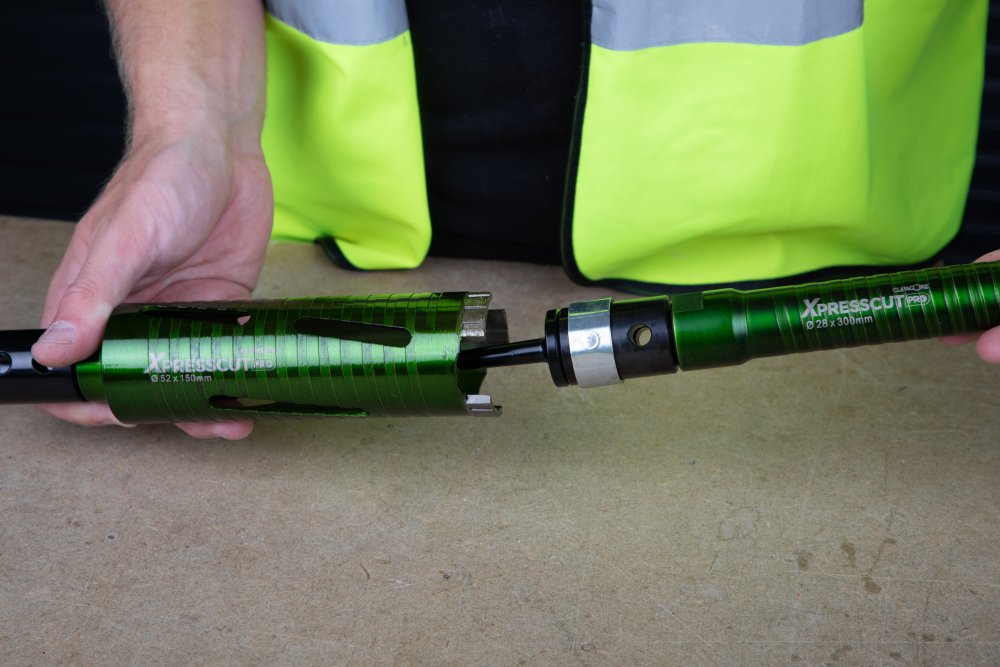 - The Clipacore Condensemate Pro puts you in control when upgrading from overflow pipe to 32mm waste pipe (or larger). Simply clip the DuoCut Pro onto the 300mm long, 22mm core bit using a Core Adaptors. Then, insert the A-Taper side of the adaptor, just as you would a Guide Pin or Pilot Drill, into a larger core bit ensuring precise alignment. The 22mm core bit can also be used on its own to prevent blowing the brick face or render wall, compared to using a 22mm SDS masonry drill bit on hammer action. Made from high-quality Cr40 Chrome Steel, it offers exceptional shear strength and is specially heat-treated for enhanced durability and toughness. Contents: 1x DuoCut Adaptor Pro 1x Clipacore Core Adaptor 1x XPRESSCUT 22 x 300mm Dry Diamond Core Drill Bit 1x Quick Release Clip